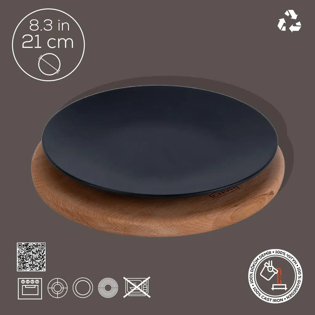 | Tags | Lava Cast Iron Round Serving Plates And Bowls. With Wooden Platter Dia. Ø 21cm. |
