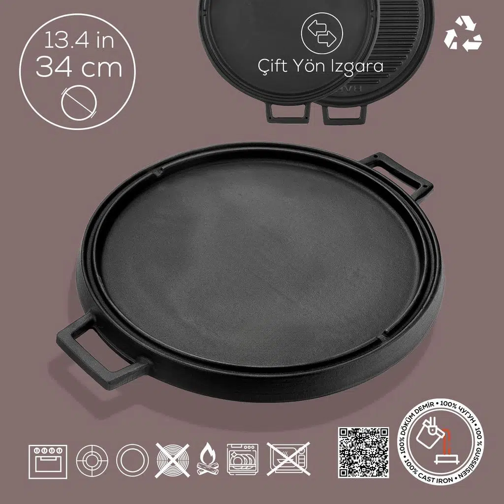 With a 2-in-1 design, LAVA Enameled Cast Iron Dual Side Griddle Pan comes in handy for grilling and frying. Choose your side for flavorful sautés or BBQ-like grills!