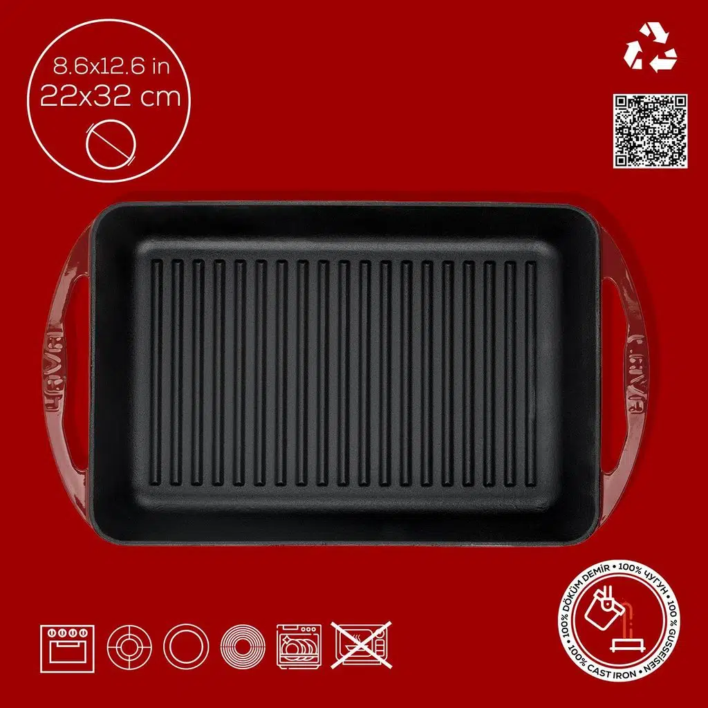 LAVA Döküm Izgara Tava’nız, mühürleme yöntemi ile sizi ağız sulandıran yemeklerle buluştururken, istenmeyen su salınımını önleyerek besin değerlerinin kaybolmasını engeller. %100 geri dönüştürülebilir ve kanserojen içermeyen LAVA’nız, sağlıklı yaşam ve sürdürülebilir bir çevre için mutfağınızda atabileceğiniz bir adımdır.