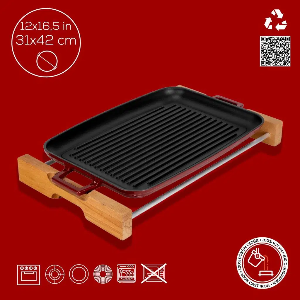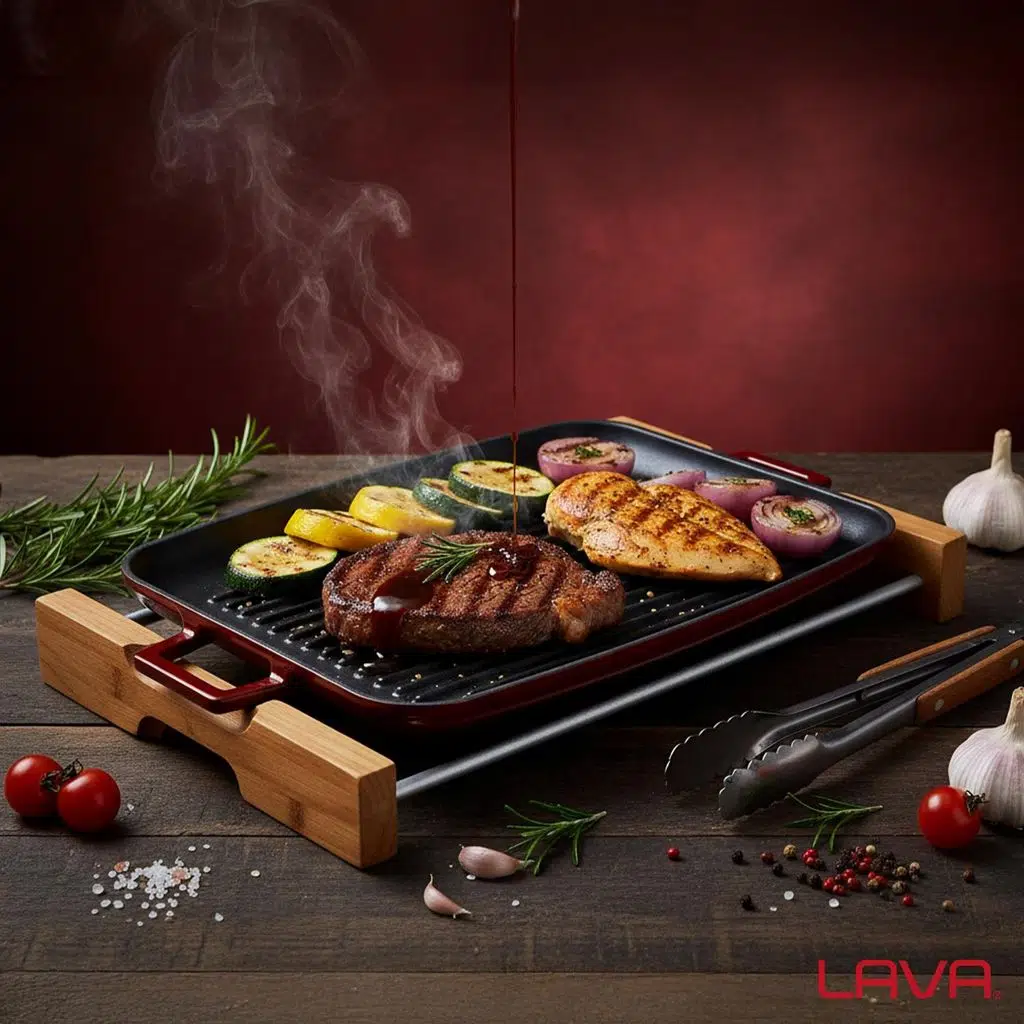 LAVA Döküm Izgara Tepsi’niz, mühürleme yöntemi ile sizi ağız sulandıran yemeklerle buluştururken, istenmeyen su salınımını önleyerek besin değerlerinin kaybolmasını engeller. %100 geri dönüştürülebilir ve kanserojen içermeyen LAVA’nız, sağlıklı yaşam ve sürdürülebilir bir çevre için mutfağınızda atabileceğiniz bir adımdır.