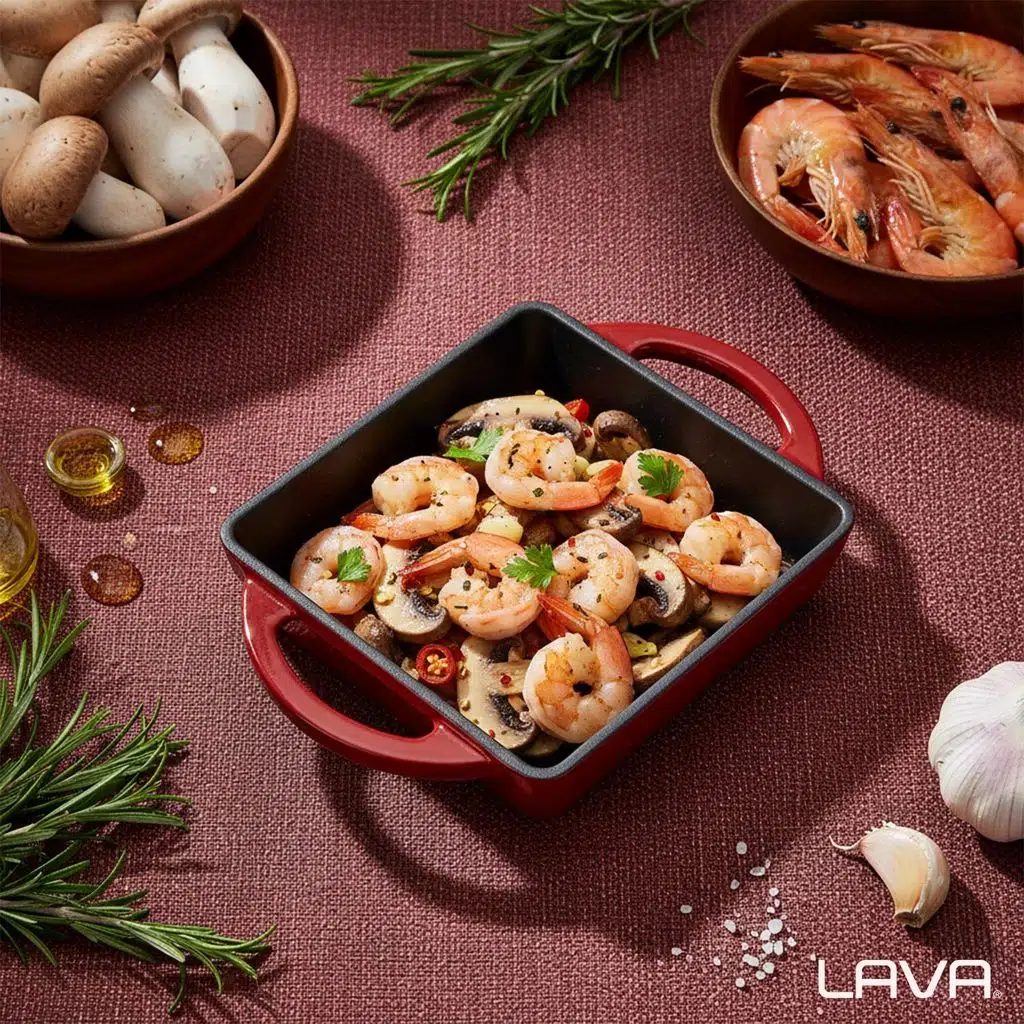 LAVA Döküm Kare Sahan ile güne sıcacık bir menemen ve cızlayan sucuklar ile başlayıp, geleneksel bir mıhlama veya bol baharatlı bir mantar yemeği ile devam edebilirsiniz. LAVA Döküm Kare Sahan’ınız, kahvaltıdan akşam yemeğine sofra sunumlarınızdan eksik olmayacak.