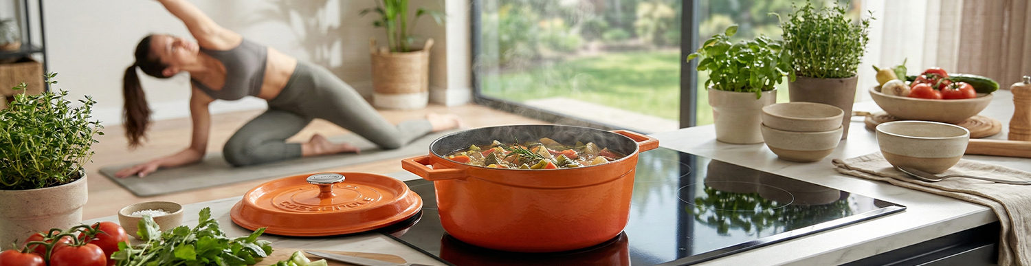 Döküm tencerede ağır ateşte pişen bir sebze yemeği, hem besin değerini korur hem de sindirimi destekler. Yavaş pişirme teknikleri; protein yapısını bozmadan, minerallerin korunmasına yardımcı olur.