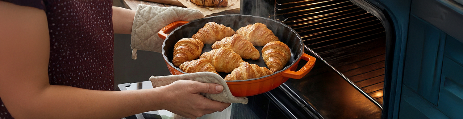 Kruvasanları yağlı kâğıt serilmiş fırın tepsisine diz.