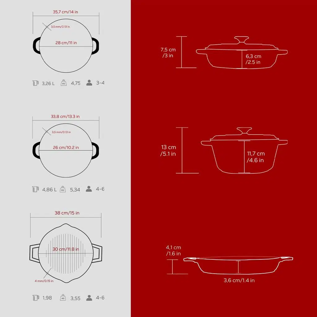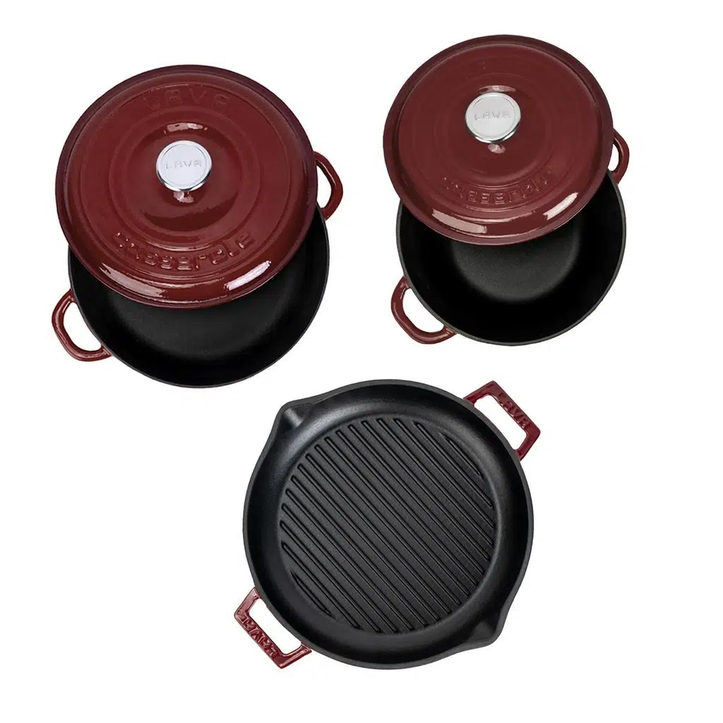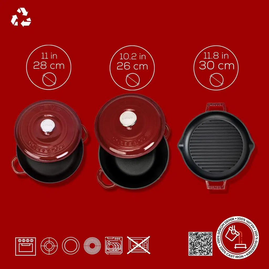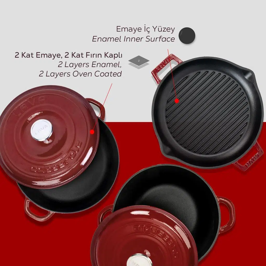 LAVA döküm demir emaye tencere ve tavalar yüksek yüzey sıcaklığında haşlama için olduğu kadar, geleneksel kısık ateşte pişirme için de etkilidir, seçim sizin..