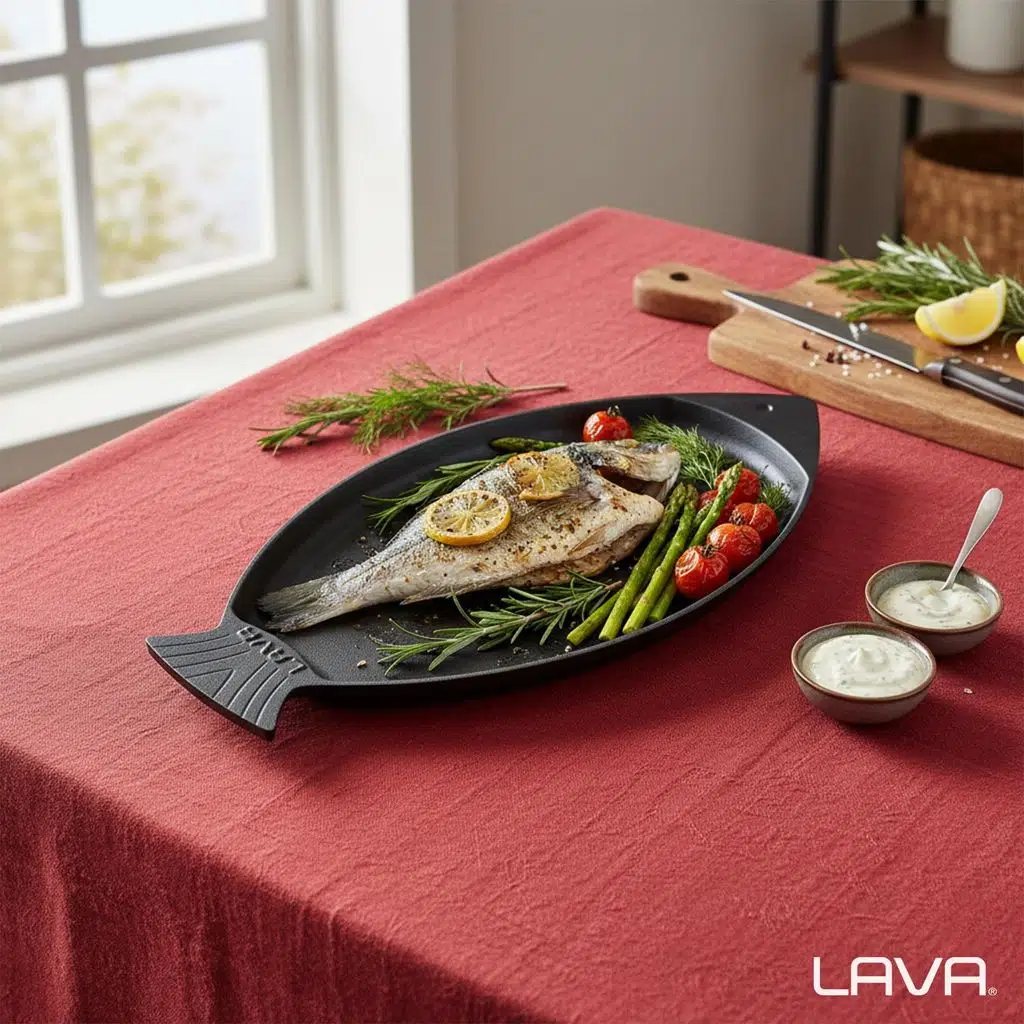 LAVA ile pişen yemeklerin lezzeti, LAVA’nın ağırlığında gizli. Yenilikçi teknolojisi ve tasarımı ile LAVA Döküm Balık Tabakları'nız ısıyı tutar ve de eşit bir şekilde dağıtılır. Enerji tasarrufuna teşvik eden LAVA’nız, hem çevrenin hem de cebinizin dostudur.