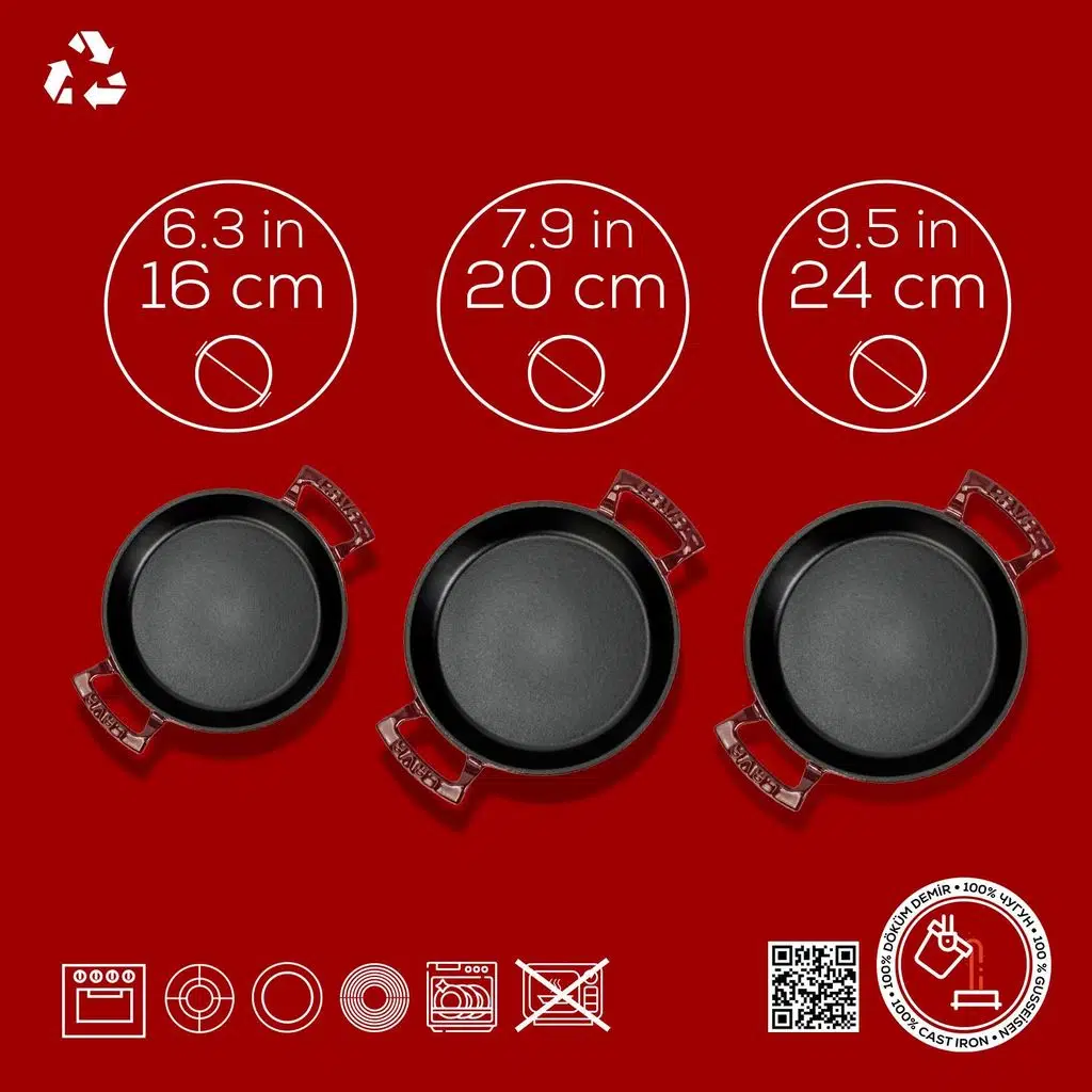 LAVA Döküm Yuvarlak Sahan ile güne sıcacık bir menemen ve cızlayan sucuklar ile başlayıp, geleneksel bir mıhlama veya bol baharatlı bir mantar yemeği ile devam edebilirsiniz. LAVA Döküm Yuvarlak Sahan’ınız, kahvaltıdan akşam yemeğine sofra sunumlarınızdan eksik olmayacak.