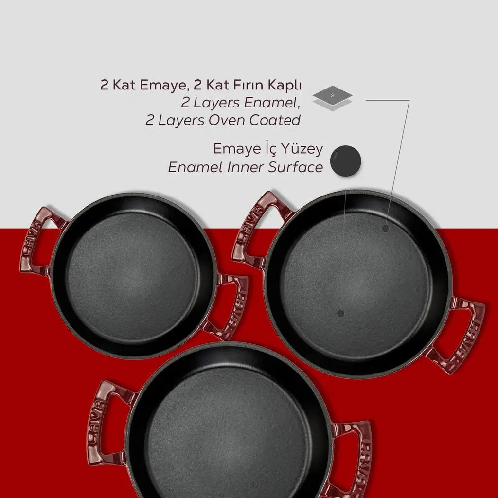 LAVA ile pişen yemeklerin lezzeti, LAVA’nın ağırlığında gizli. Yenilikçi teknolojisi ve tasarımı ile LAVA Döküm Yuvarlak Sahan’ınız ısıyı tutar ve de eşit bir şekilde dağıtılır. Enerji tasarrufuna teşvik eden LAVA’nız, hem çevrenin hem de cebinizin dostudur.