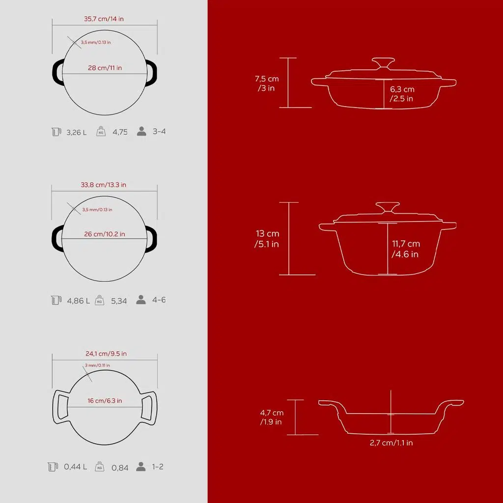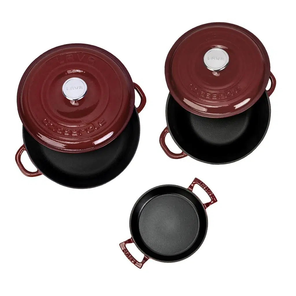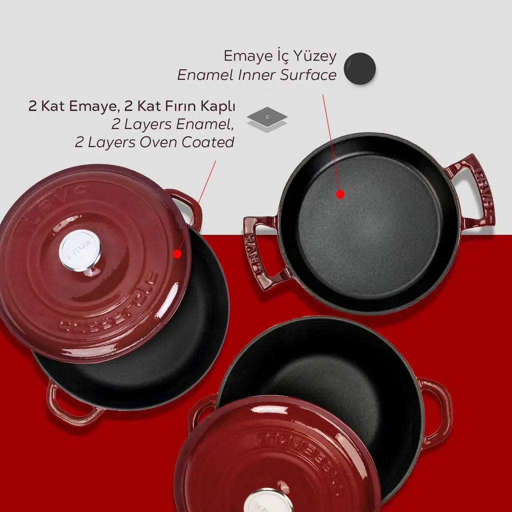 LAVA döküm demir emaye tencere ve tavalar yüksek yüzey sıcaklığında haşlama için olduğu kadar, geleneksel kısık ateşte pişirme için de etkilidir, seçim sizin..