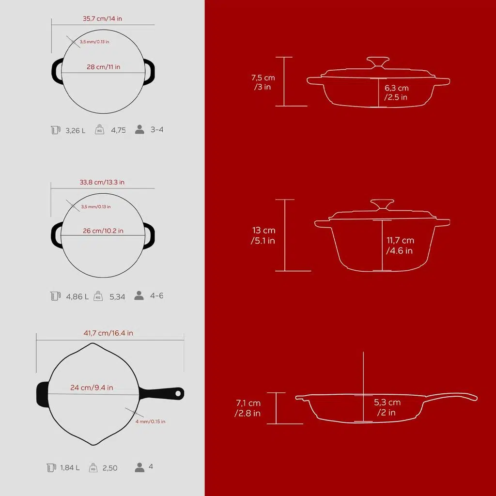 LAVA döküm demir emaye tencere ve tavalar yüksek yüzey sıcaklığında haşlama için olduğu kadar, geleneksel kısık ateştselame pişirme için de etkilidir, seçim sizin..