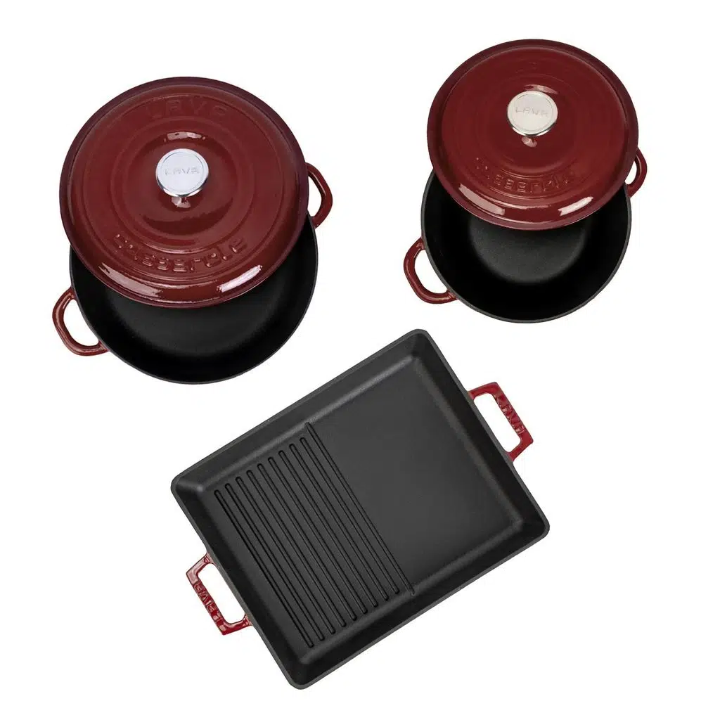 LAVA döküm demir emaye tencere ve tavalar yüksek yüzey sıcaklığında haşlama için olduğu kadar, geleneksel kısık ateşte pişirme için de etkilidir, seçim sizin..