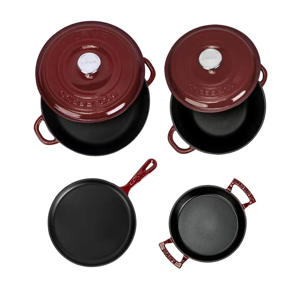 LAVA döküm demir emaye tencere ve tavalar yüksek yüzey sıcaklığında haşlama için olduğu kadar, geleneksel kısık ateşte pişirme için de etkilidir, seçim sizin..