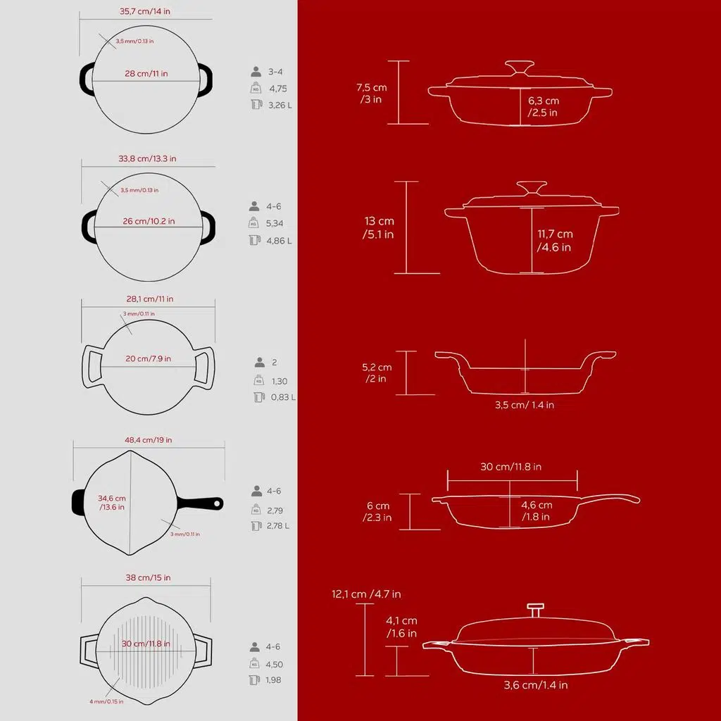LAVA döküm demir emaye tencere ve tavalar yüksek yüzey sıcaklığında haşlama için olduğu kadar, geleneksel kısık ateşte pişirme için de etkilidir, seçim sizin..