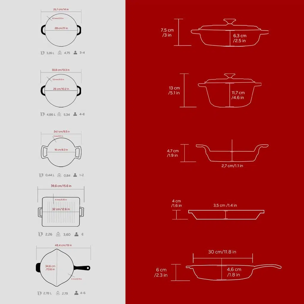 LAVA döküm demir emaye tencere ve tavalar yüksek yüzey sıcaklığında haşlama için olduğu kadar, geleneksel kısık ateşte pişirme için de etkilidir, seçim sizin..