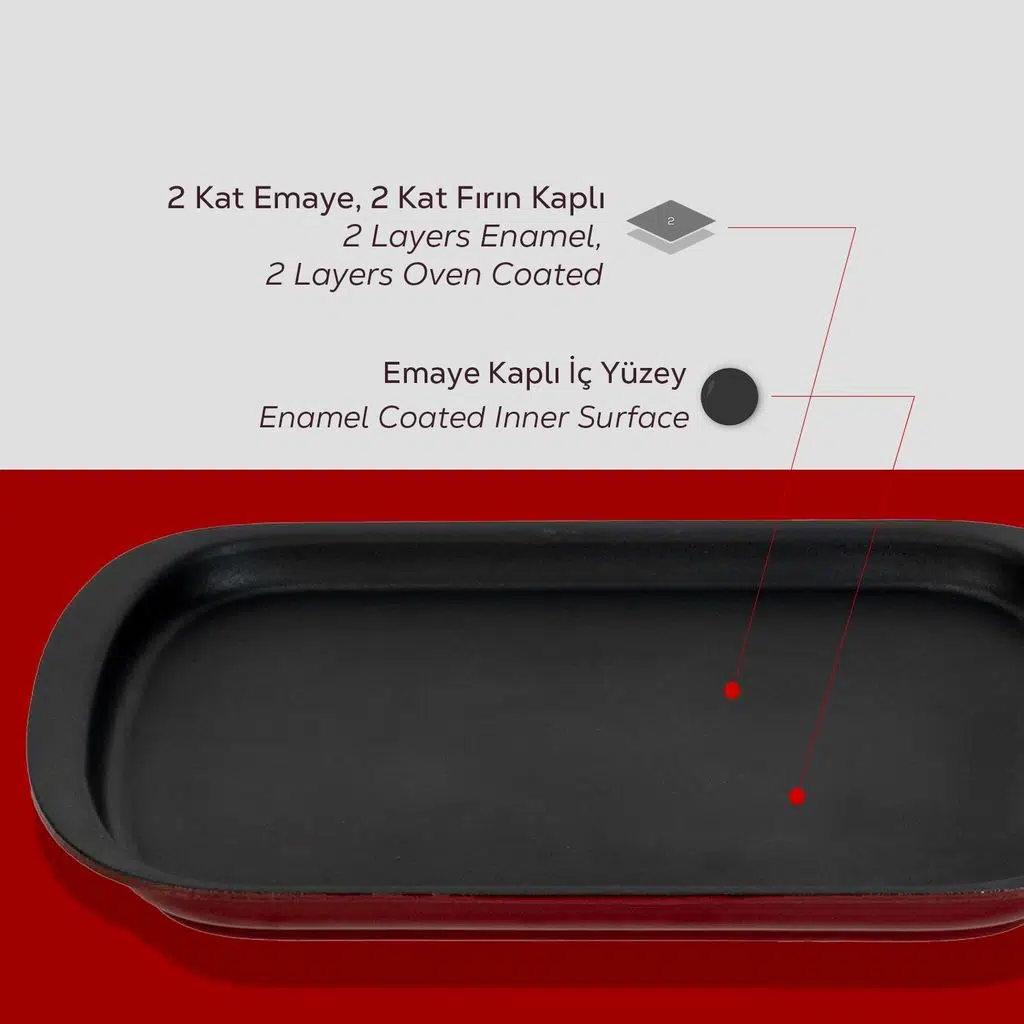 Mat siyah veya krem renk seçenekleriyle birbirinden farklı LAVA Döküm Servis Tabakları ile şık sofralar ve profesyonel sunumlar! Yüksek ısı dayanıklılığı ve ısı tutma özellikleriyle masada dahi pişirme işlemine devam edebilir, uzun süre sıcak kalan hazırlayabilir ve heyecanlı gösteriler sunabilirsiniz. LAVA Döküm Servis Tabakları, soğuk sunumlar için de birebir.