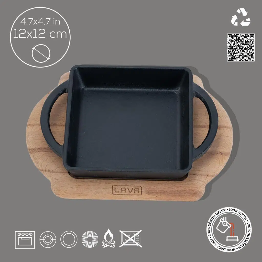 | Etiketler | Lava Döküm Kare Sahan Döküm Demir Yekpare Çift Kulplu Kayın Servis Ahşabı Ölçü 12x12cm. |