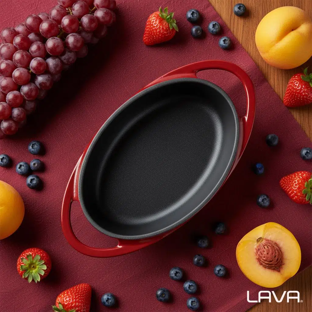 LAVA ile pişen yemeklerin lezzeti, LAVA’nın ağırlığında gizli. Yenilikçi teknolojisi ve tasarımı ile LAVA Döküm Oval Sahan’ınız ısıyı tutar ve de eşit bir şekilde dağıtılır. Enerji tasarrufuna teşvik eden LAVA’nız, hem çevrenin hem de cebinizin dostudur.
