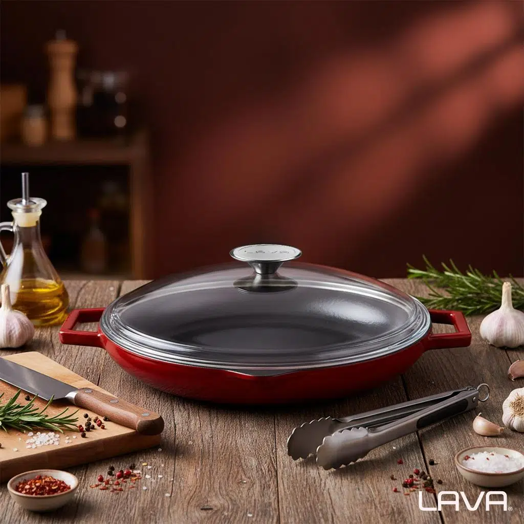 LAVA Döküm Kızartma Tava’nız, mühürleme yöntemi ile sizi ağız sulandıran yemeklerle buluştururken, istenmeyen su salınımını önleyerek besin değerlerinin kaybolmasını engeller. %100 geri dönüştürülebilir ve kanserojen içermeyen LAVA’nız, sağlıklı yaşam ve sürdürülebilir bir çevre için mutfağınızda atabileceğiniz bir adımdır.