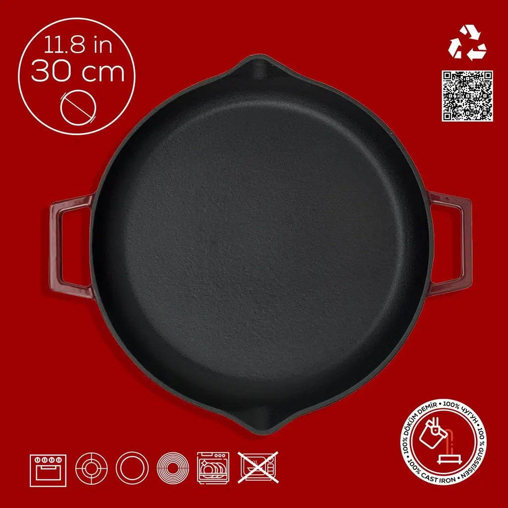 Çift kulpu sayesinde rahat bit tutuş sağlayan LAVA Döküm 30 cm Yuvarlak Kızartma Tavası ile kalabalık gruplar için et ve balık kızartabilir, sebze soteleyebilir veya dünya mutfaklarından esinlenerek yaratıcı bir kızarmış pirinç yapabilirsiniz. Pratik yağdanlıkları ile de yağ ve su gibi sıvıları boşaltabilir, etkileyici soslar servis edebilirsiniz. Aynı zamanda, mühürleme yöntemi ile mangal tadında lezzetler hazırlayabilirsiniz.
