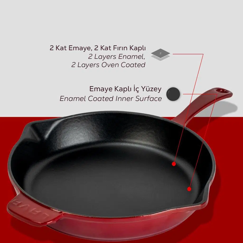 LAVA Döküm Kızartma Tava’nız, mühürleme yöntemi ile sizi ağız sulandıran yemeklerle buluştururken, istenmeyen su salınımını önleyerek besin değerlerinin kaybolmasını engeller. %100 geri dönüştürülebilir ve kanserojen içermeyen LAVA’nız, sağlıklı yaşam ve sürdürülebilir bir çevre için mutfağınızda atabileceğiniz bir adımdır.