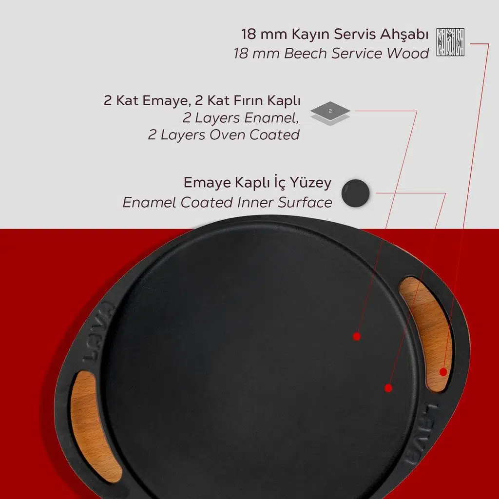 LAVA Döküm Sac Kavurma Tavası ile hem geleneksel Türk Mutfağı lezzetlerine profesyonel şef dokunuşu katabilir, hem de bir sonraki kamp maceranızda, açık ateşte pratik yemekler hazırlayabilirsiniz. Yüksek ısı dayanıklılığına ve ısı tutma özelliği sayesinde, LAVA Döküm Sac Kavurma Tavası ile uzun süre sıcak kalacak sunumunuzu, şık kayın ahşap altlığı ile tamamlayabilirsiniz.
