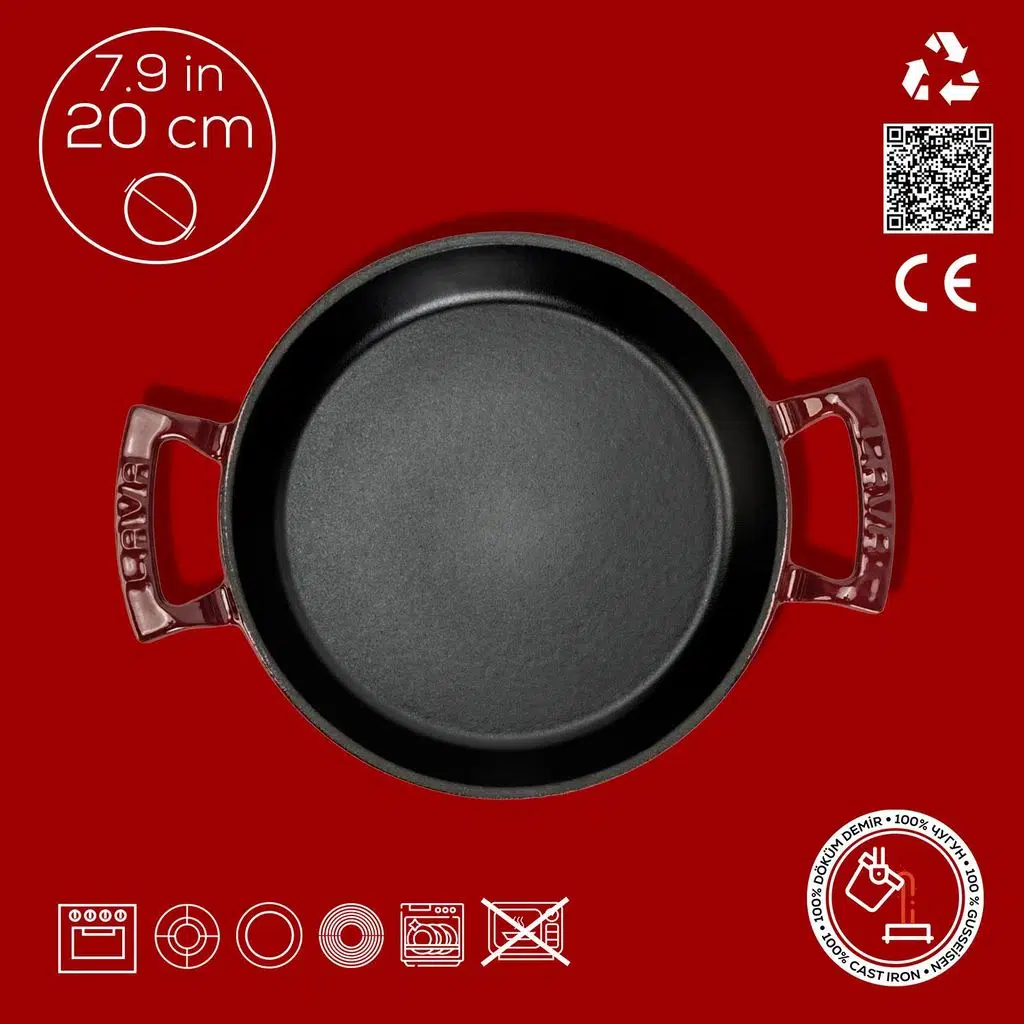 LAVA Döküm Yuvarlak Sahan ile güne sıcacık bir menemen ve cızlayan sucuklar ile başlayıp, geleneksel bir mıhlama veya bol baharatlı bir mantar yemeği ile devam edebilirsiniz. LAVA Döküm Yuvarlak Sahan’ınız, kahvaltıdan akşam yemeğine sofra sunumlarınızdan eksik olmayacak.