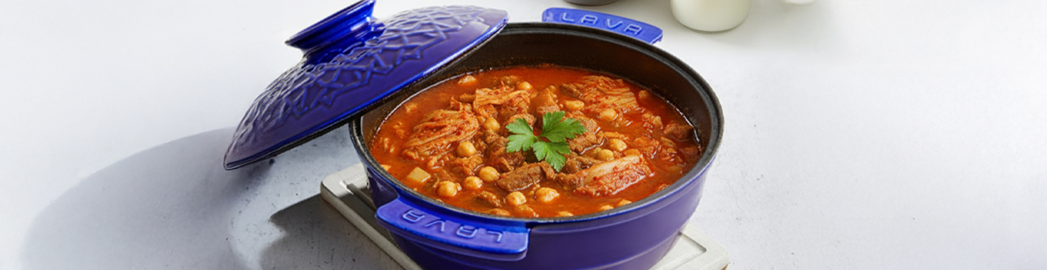 Bir tencerede zeytinyağını ısıtın. İnce doğranmış soğanı ekleyip pembeleşene kadar kavurun. Ardından sarımsağı, havucu ve kabağı ekleyerek birkaç dakika soteleyin. Sebzeler hafifçe yumuşayınca haşlanmış nohutları ve doğranmış kimchiyi ilave edin. Üzerine sıcak suyu (veya sebze suyunu) dökün. Soya sosunu, kırmızı toz biberi, tuzu ve karabiberi ekleyip karıştırın. Kısık ateşte 20-25 dakika kadar pişirin; sebzeler iyice yumuşayıp kimchinin aroması yemeğe geçtiğinde güveciniz hazır olacaktır.